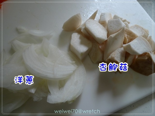 杏鮑菇切滾刀塊 洋蔥切絲